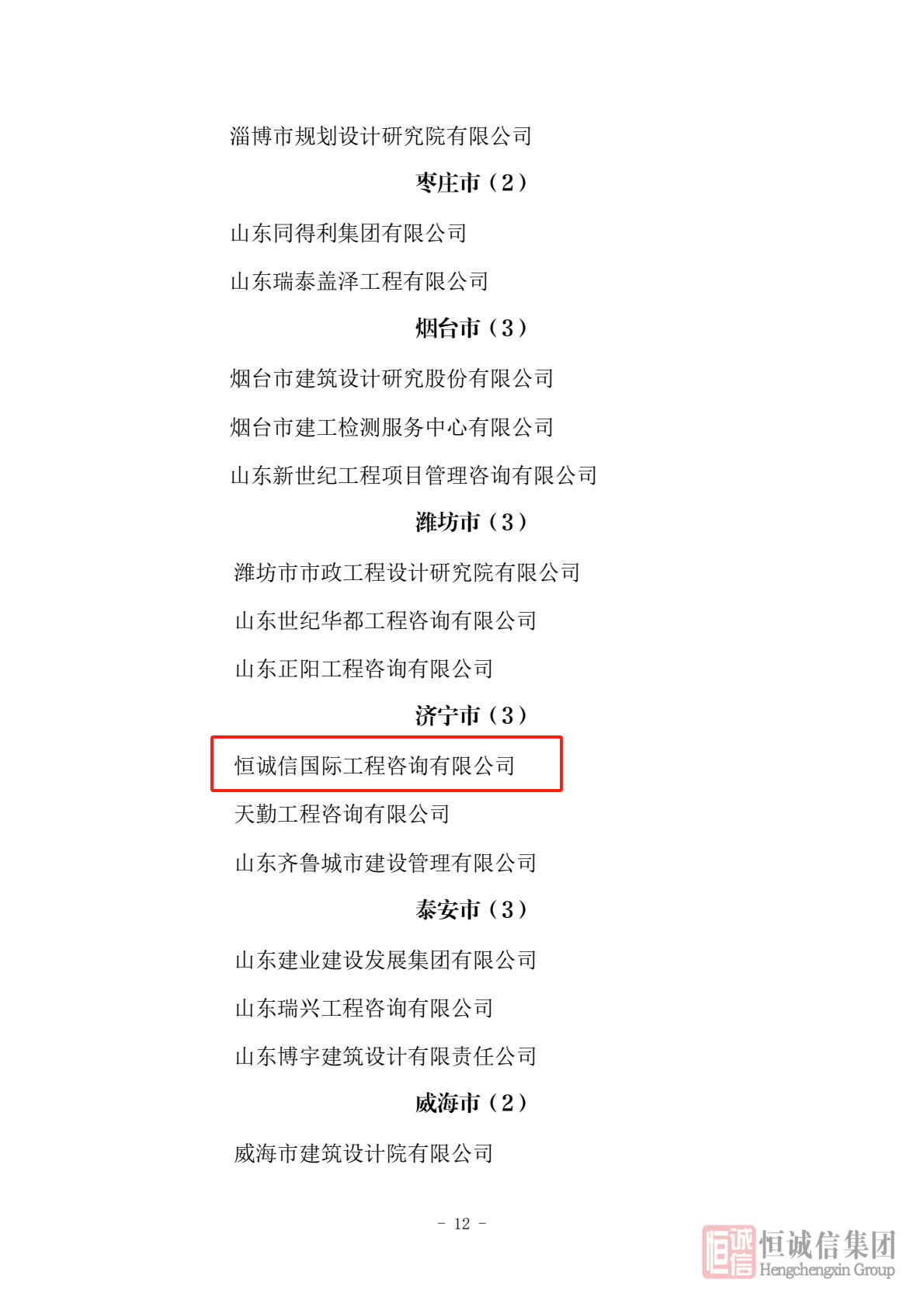 近日,山東省住房和城鄉(xiāng)建設廳公布了2025年第一批“齊魯建造”品牌入選企業(yè)名單,恒誠信國際工程咨詢有限公司憑借其在工程咨詢領域的卓越實力和行業(yè)貢獻成功入選,標志著公司在專業(yè)化、品牌化發(fā)展道路上邁出重要一步。